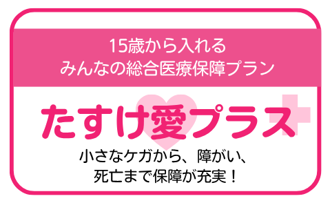 | 死亡保険金 | 亡くなられたときの保障です。たすけ愛プラスは100万円、たすけ愛は50万円保障されます。 |